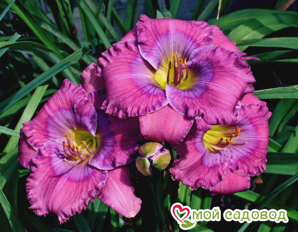 Изящный многолетник вырастает в длину от 50 см до 1 м. Листья мечевидные, прикорневые, продолговатые и узкие. Окрашены они в насыщенно-зеленый цвет, с голубоватым оттенком. Цветение начинается в июне. На каждом кусте раскрываются крупные и пышные цветки. Лепестки ярко-сиреневые, с гофрированной каймой. Ближе к серединке они приобретают фиолетовый оттенок. Лилия источает потрясающий аромат, который мгновенно наполняет весь сад.